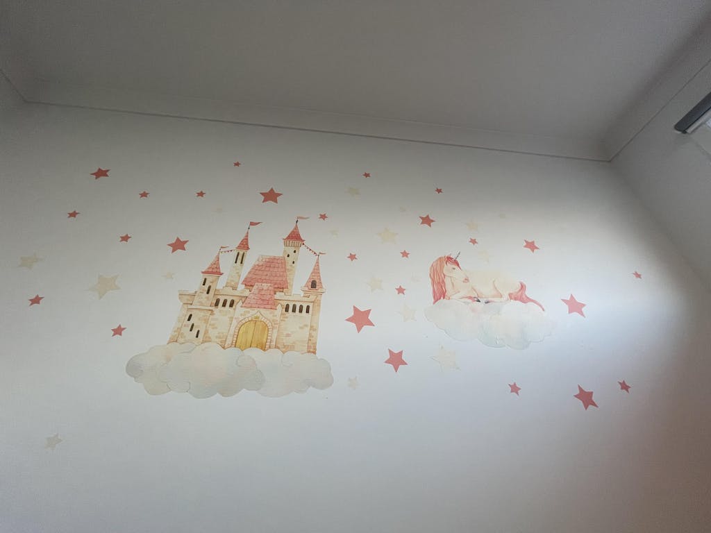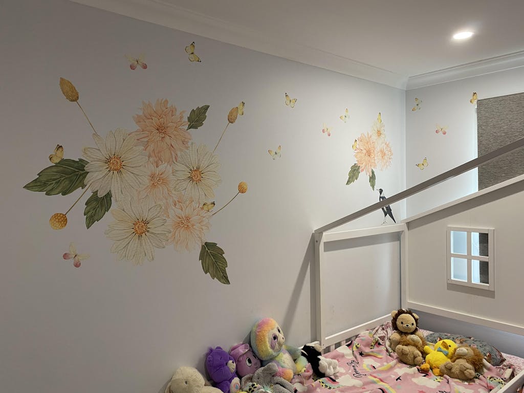 My daughter is absolutely in love with her new decals! The quality is outstanding—thick, textured, and exactly as pictured. The colors are vibrant, and the artwork is truly beautiful. They were easy to apply, and we used a top-down approach with the large palm decal to maximize height. A perfect addition to her space!