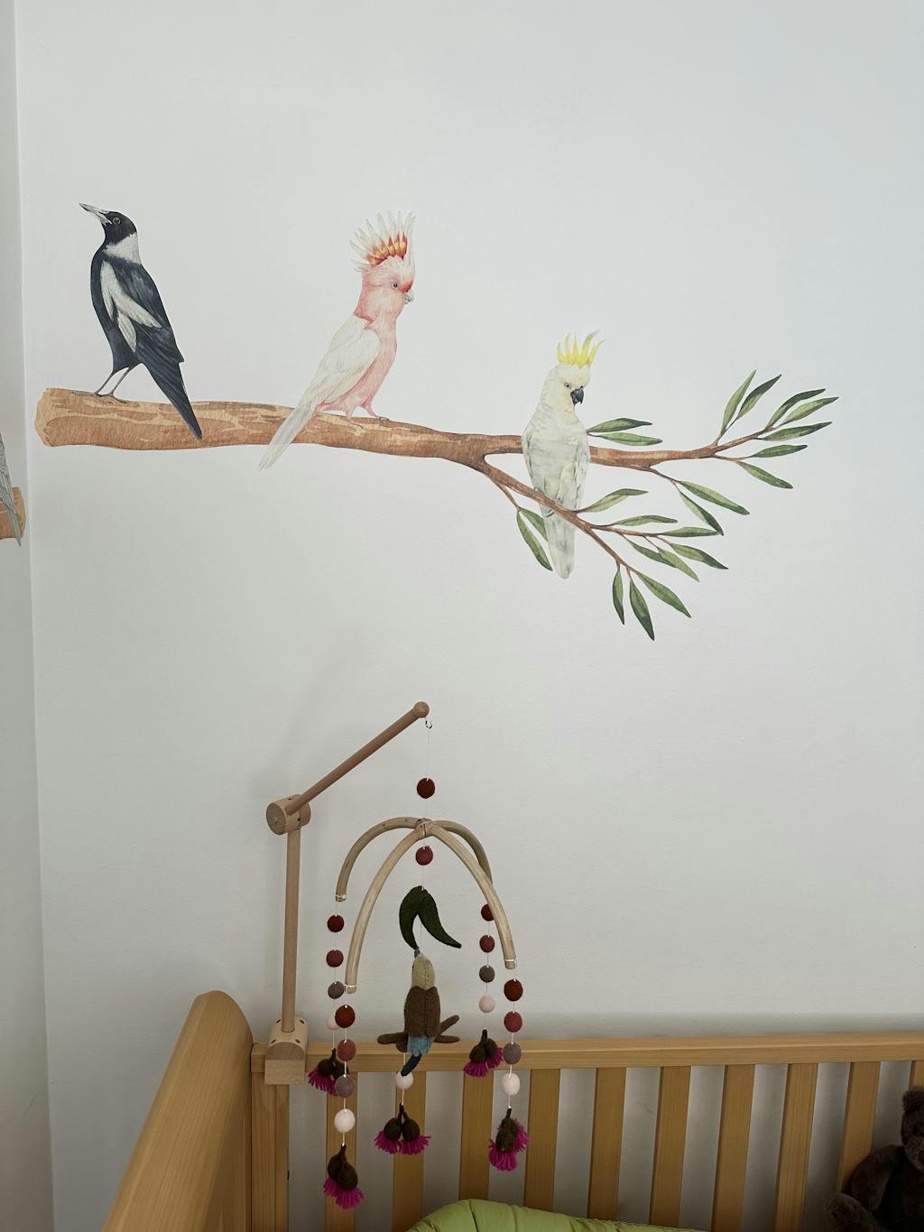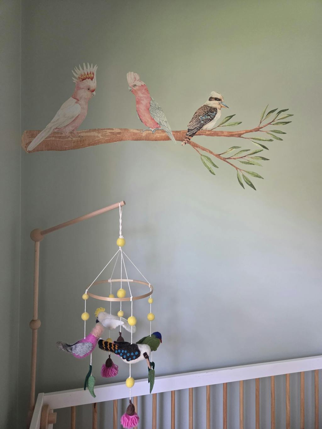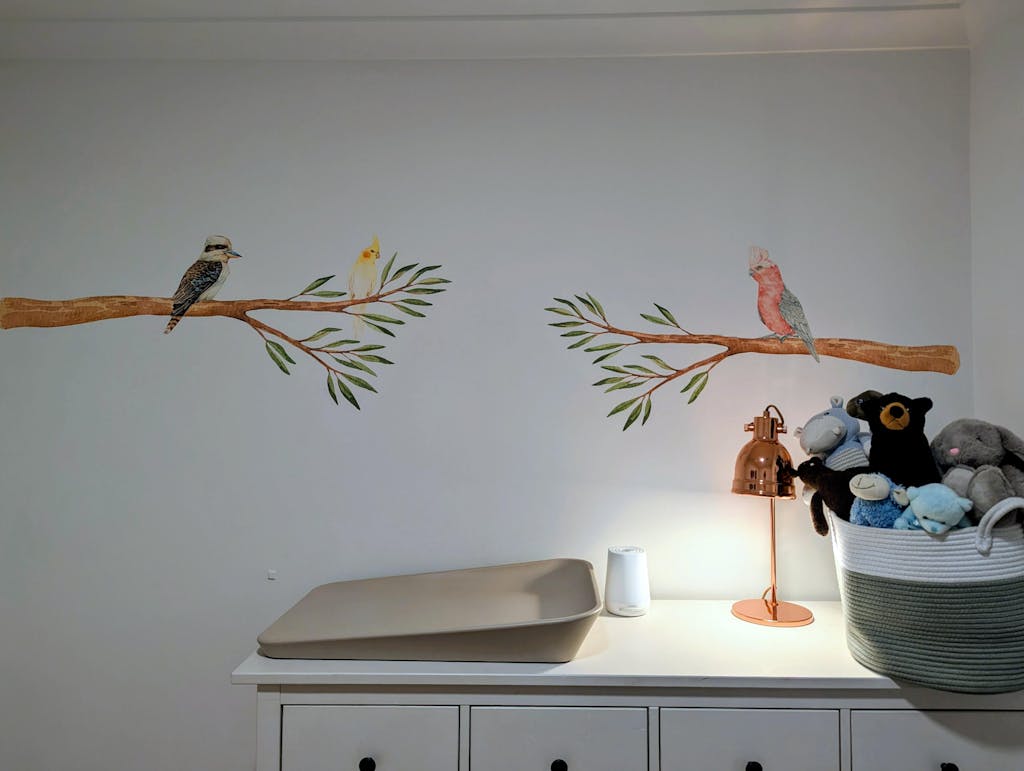 These wall decals are stunning, the artwork is so pretty and the fabric is so soft. It was incredibly easy to add them onto the wall. We paired the Aussie birds with some NZ birds from another site and I’m so glad that they matched so well.