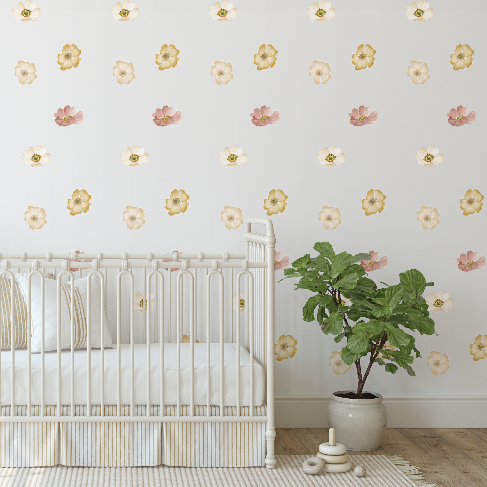 Bring soft colour and vintage charm to your child’s room with our Marigold Mini Floral Wall Decals. Hand-painted in dusty pink, mustard, and soft cream, these delicate flowers are perfect for styling above a bed, cot, or dresser. They instantly turn plain walls into a calming, whimsical backdrop — no paint or wallpaper required.