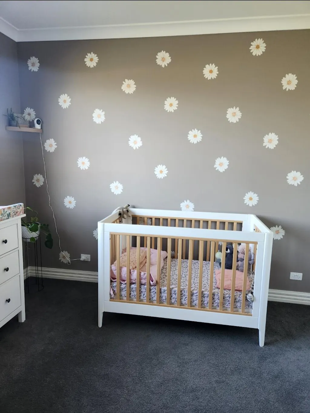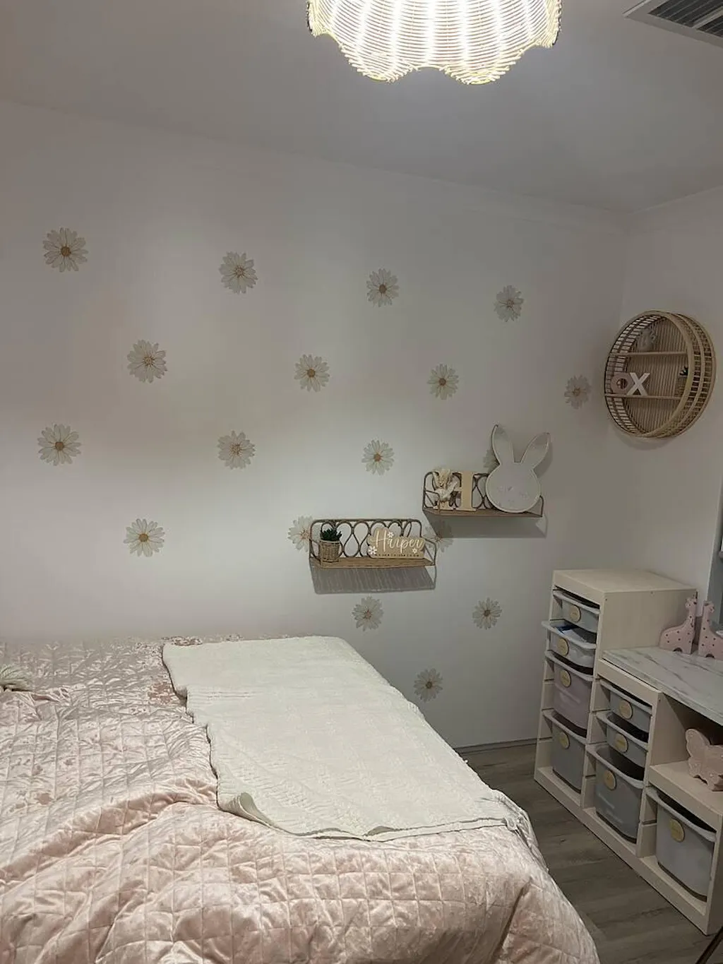Whether scattered above a cot, lining a reading nook, or dotting the wall behind a bed, these mini daisies bring a feeling of softness and joy. They create an atmosphere that feels peaceful, playful, and beautifully personal — one your child will love for years to come.