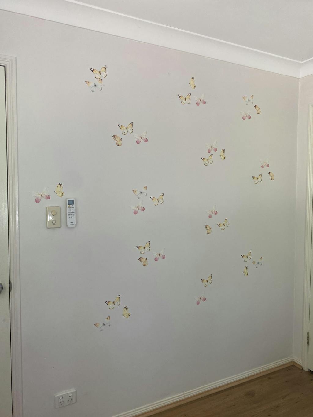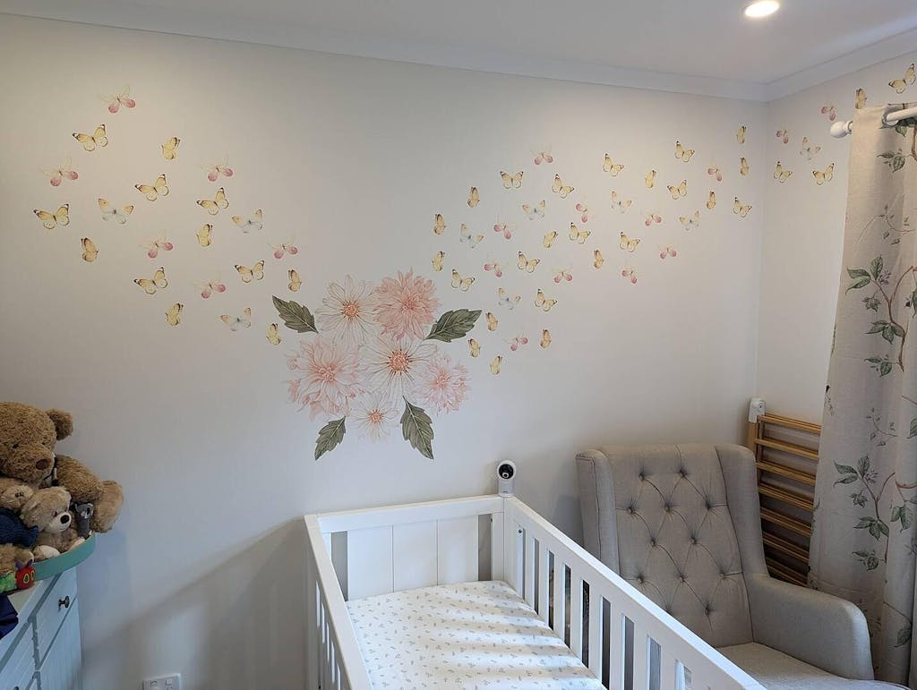 Bring your child's space to life with a soft swirl of hand-painted butterflies in a mix of delicate colours and poses. This enchanting set turns any wall into a playful, uplifting scene — perfect for sparking daydreams, storytelling, and quiet moments of joy.