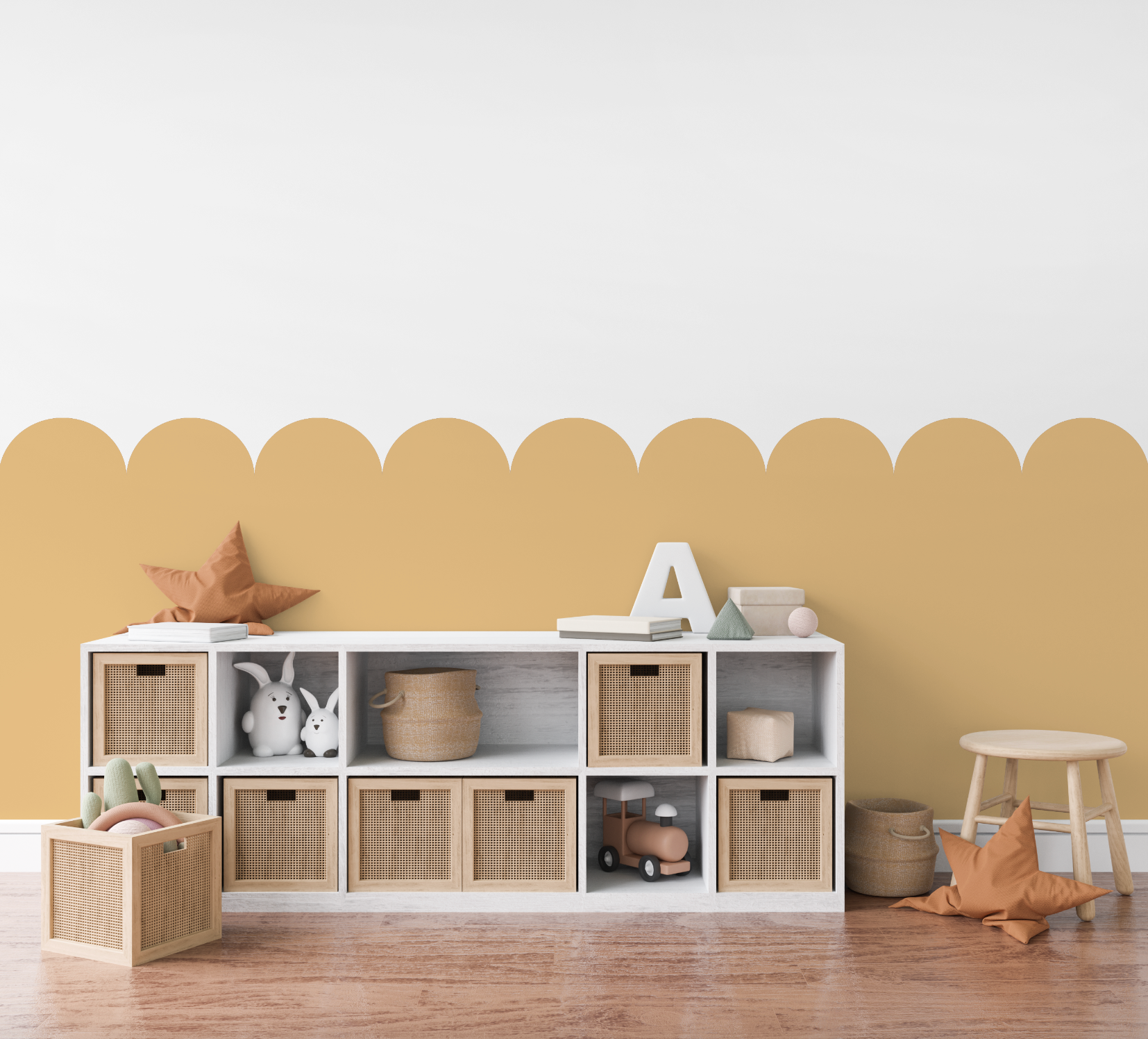 Plain Walls Make the Room Feel Cold. Add instant warmth and style with our scalloped wall decals. Easy to apply, removable, and available in colours to match any space.