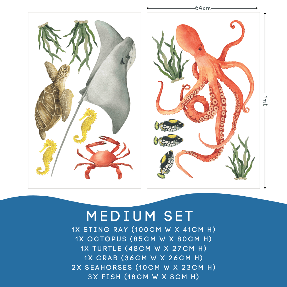 With seahorses, colourful fish, and flowing seagrass, this set creates a calming, storybook-inspired ocean scene — perfect for a feature wall or a playful accent in nurseries, bedrooms, or playrooms.